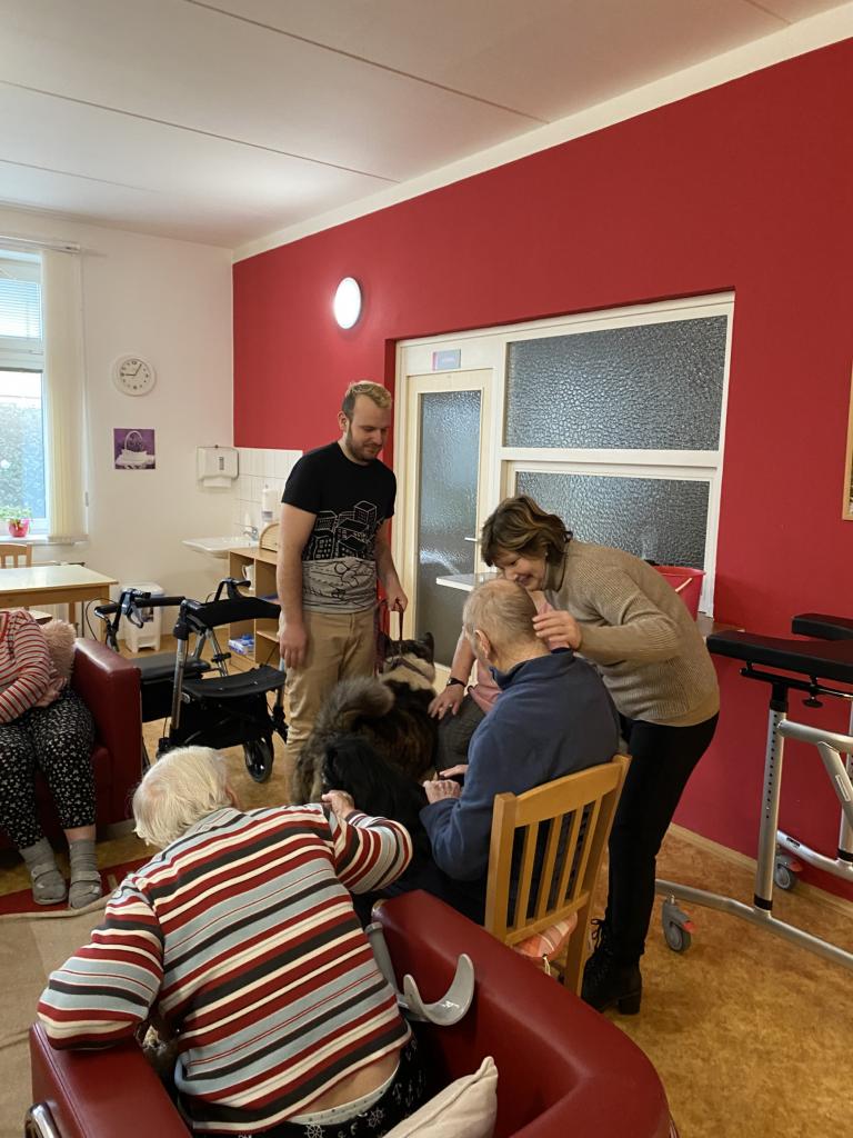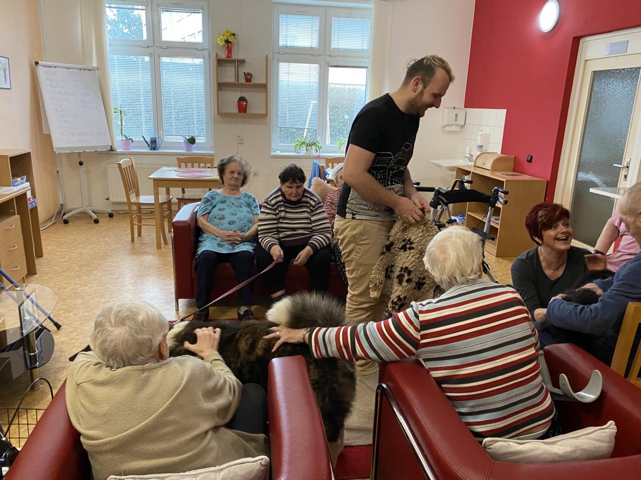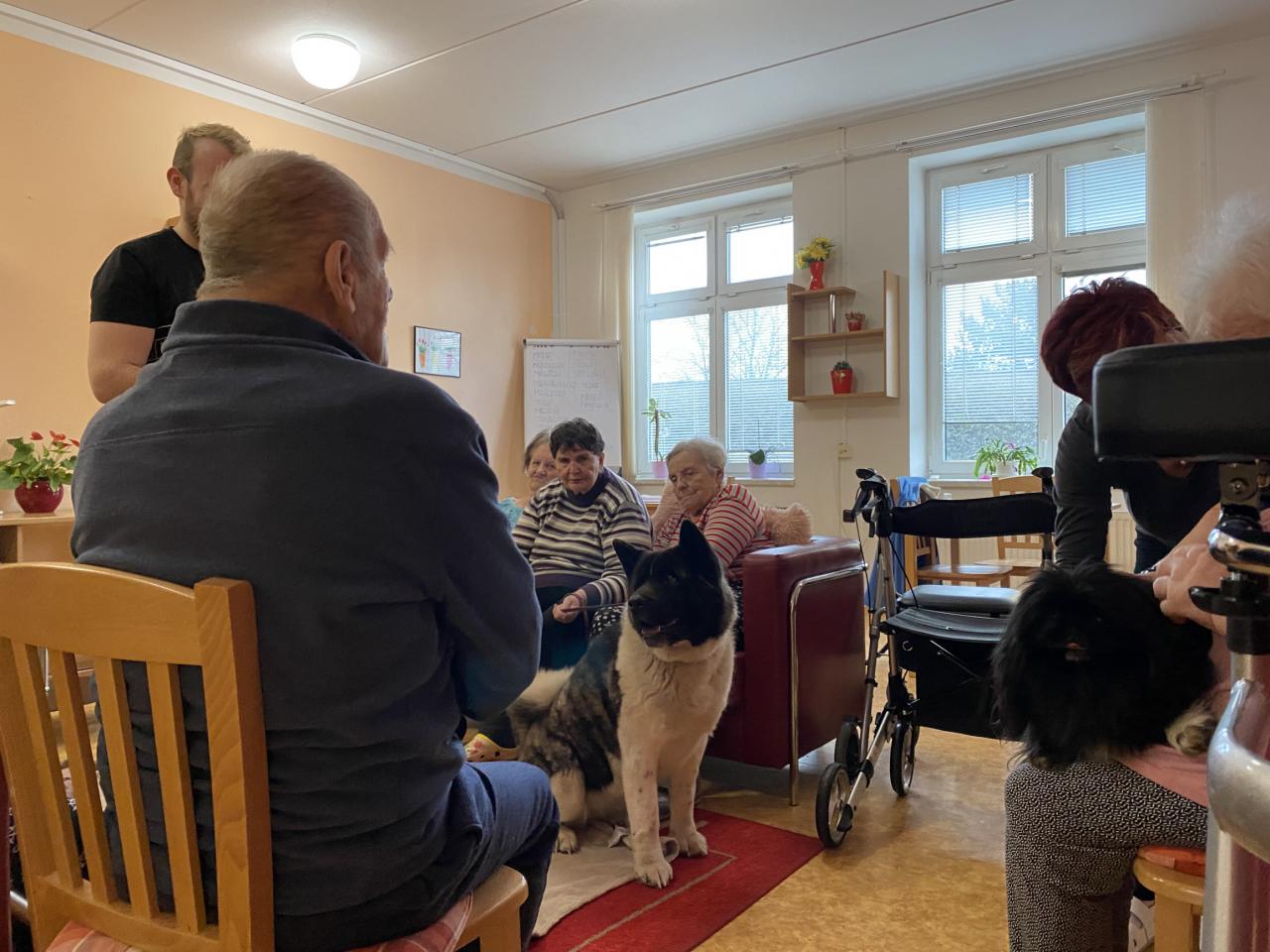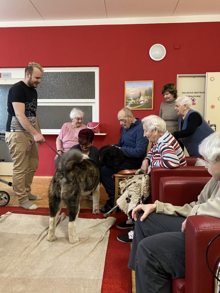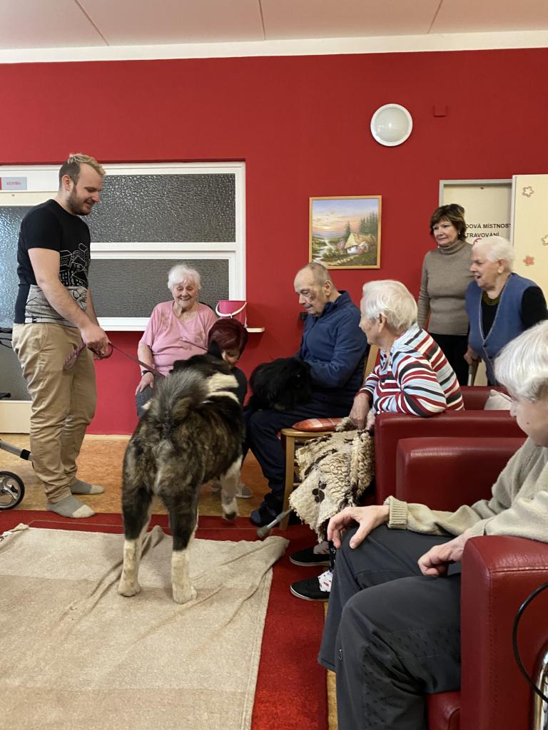 Mohelnický domov pro seniory již pravidelně navštěvuje canisterapeut se svými svěřenci. Tentokrát nás na Lidické ulici navštívily fenky Carmen a Mary a potěšily a polaskaly dědečky a babičky jedno únorové dopoledne. Zájem mezi klienty domova je o tuto aktivitu obrovský, vždyť kdo by neměl rád zvířátka! Canisterapeut nejprve pejsky představil všem společně a potom se psími kamarádkami obešel i jednotlivé pokoje, aby i klienti, kteří nebyli za pejsky společně, ucítili z lůžka mezi prsty jejich srst a tu milou zvířecí energii.