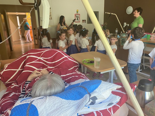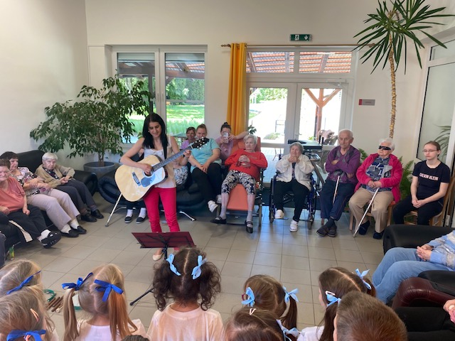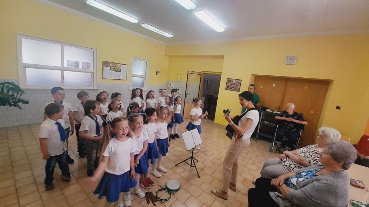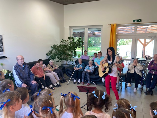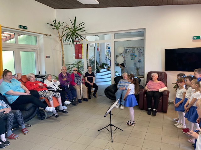 Mateřská škola Na Zámečku se postarala o rozptýlení našich seniorů. Jedno příjemné odpoledne 30. května s dětmi strávili obyvatelé domu s pečovatelskou službou na Medkově ul. a krásné slunné dopoledne 31. května si s dětmi užili i senioři v Domě pro seniory na Lidické ulici. Pásmo písniček a básniček o jaru a zvířátkách v interpretaci malých recitátorů a zpěváků si vesele užili všichni. A veselé bylo i posezení a povídání seniorů s dětmi. Taková dětskou energií nabitá návštěva vždycky vykouzlí široké úsměvy na tvářích všech! Už teď se těšíme na další setkání….